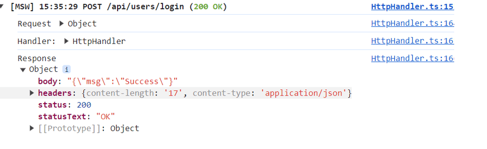 In case we are using MSW for testing we need to configure a request mocking server with the given Request Handlers. Creating Request Handlers will remain the same as described in Sections 1.2 and 1.3